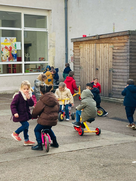 Ça sent le printemps cette après-midi chez les maternelles de MS/GS... les jeux de cour ressortent car cour sèche et ensoleillée au plaisir des loulous.