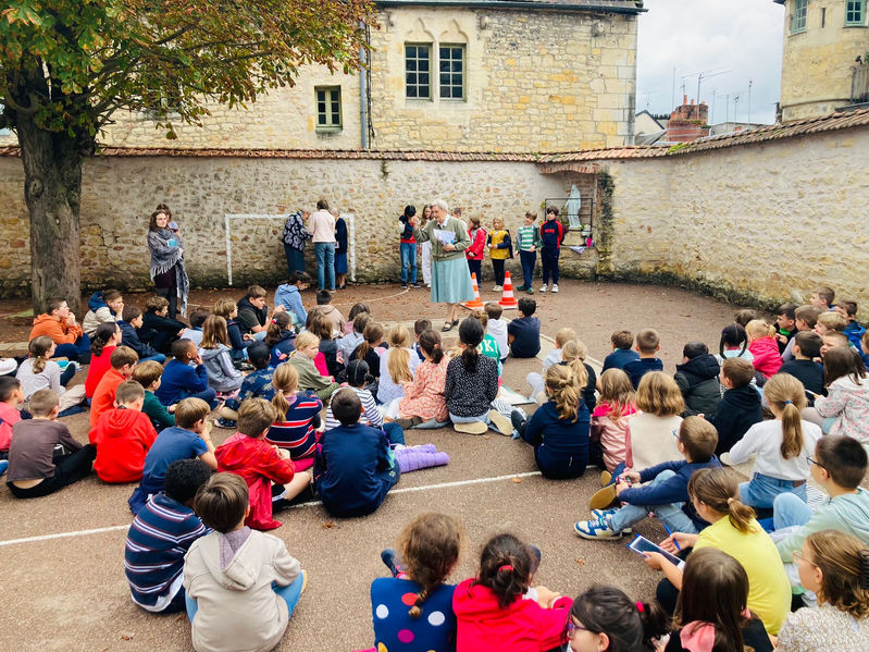 Aidées d'une catéchiste, des enseignants et de la directrice une présentation et un temps de prière se sont déroulés en début d'après-midi sur la cour auprès de notre statue de la vierge.