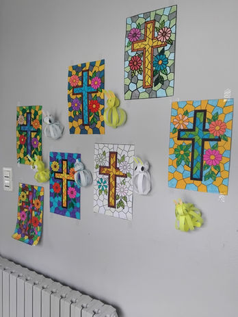 À l'occasion de la célébration de Pâques, les élèves de la classe de CE2/CM1 (pour ceux qui le souhaitaient) ont participé à un petit concours de la plus jolie croix coloriée. Celle-ci a été présentée lors de la célébration. Bravo à Victoire !