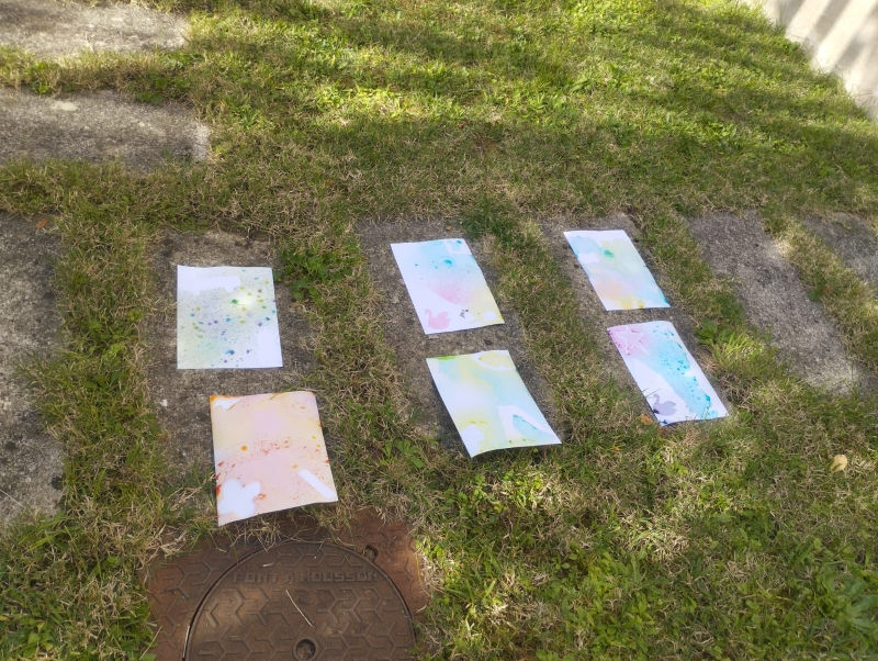 Séances d'arts plastiques sur les pochoirs et spray de peinture. Voir les effets des pleins et des vides suite à des choix plastiques (découpage de l' intérieur d'une forme ou de la forme).