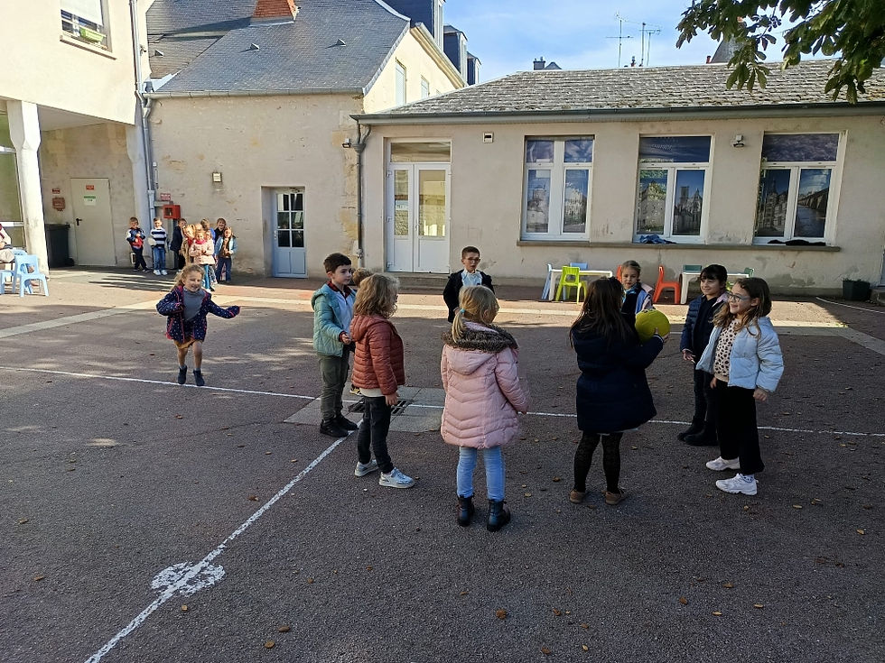 Un petit jeu sur la cour organisé par le maître M. Desnues : le jeu de l'horloge.