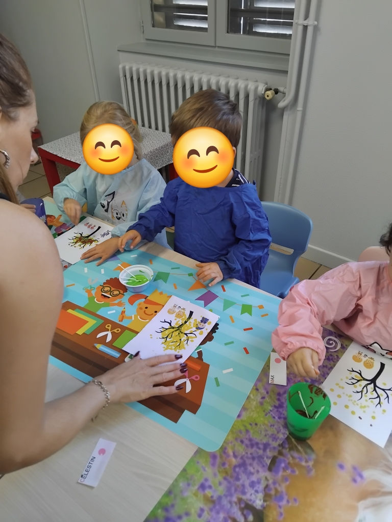 Voici un instant volé en MS/GS2 d'un atelier peinture en ce 2ème jour de classe. De nouvelles habitudes, de nouveaux locaux, de nouvelles enseignantes pour ces petits élèves qui petit à petit prendront leurs repères...!